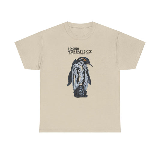 Penguin with Baby Chick Edge Sculpture Unisex Tee